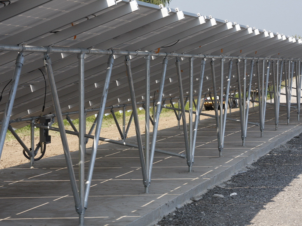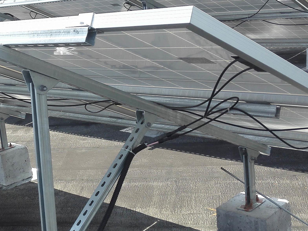 太阳能支撑系统相关产品材质为碳钢和不锈钢,碳钢表面做热镀锌处理,户外使用30年不生锈。太阳能光伏支架系统的特点是无焊接、无钻孔、100%可调、100%可重复利用。