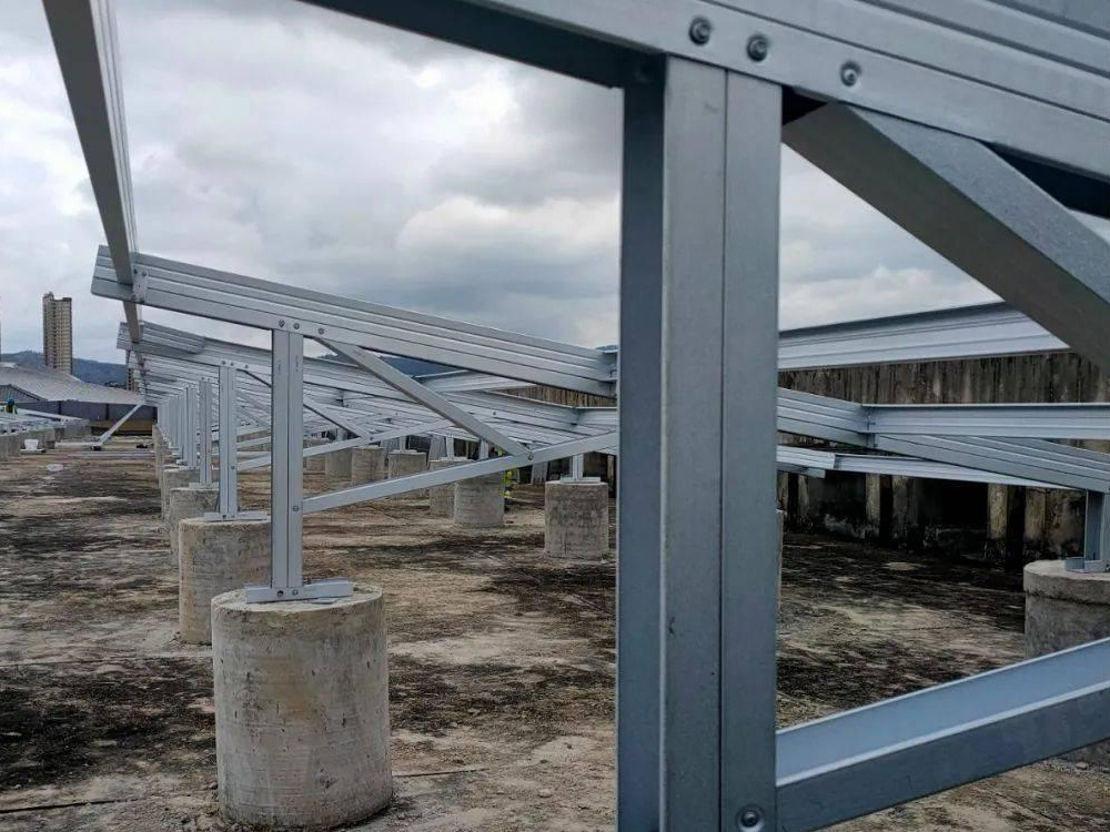 太阳能支撑系统相关产品材质为碳钢和不锈钢,碳钢表面做热镀锌处理,户外使用30年不生锈。太阳能光伏支架系统的特点是无焊接、无钻孔、100%可调、100%可重复利用。